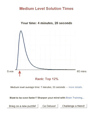 Update: Well, I guess words really are necessary; the picture doesn't say what kind of puzzle was solved. A sudoku. I get mine at http://www.websudoku.com/